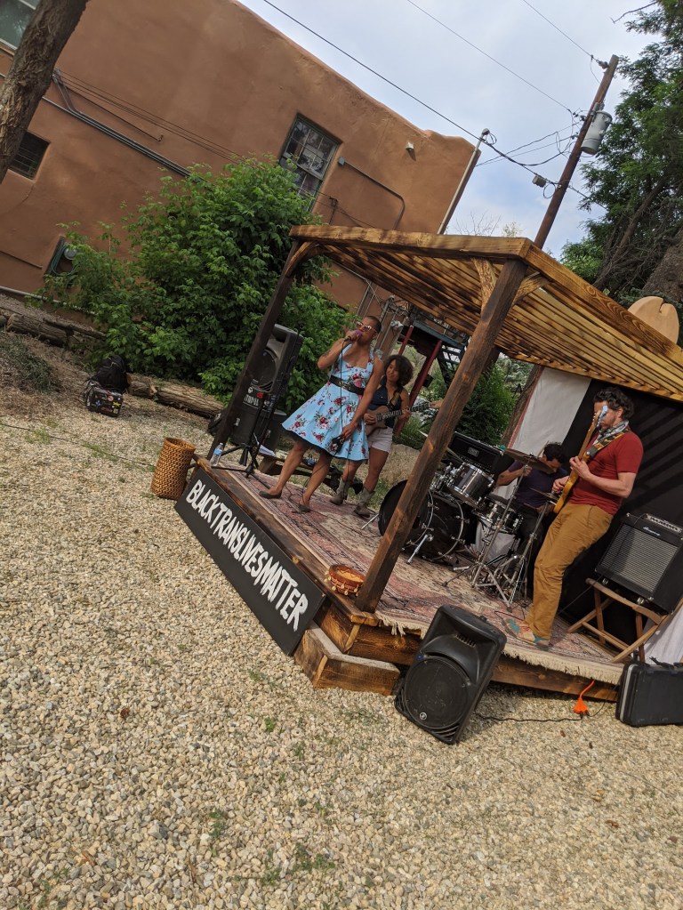 Our Salman Lee. Enchanting Taoseña. Gifted Tenor. Front-woman rocking OUT with the Souldillas. Activist who organizes the most provocative and necessary protest in town [EVER] centering George Floyd/Black Lives Matter and leads the demonstration in a PERFECTLY wrapped turban, petticoat and heels. She is remarkable.